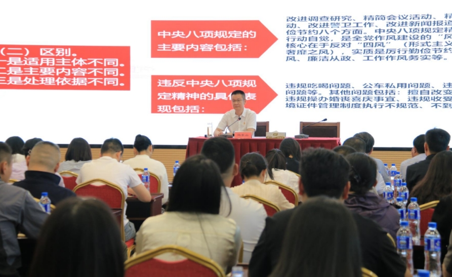 集团党委委员、副经理、工会主席黎兴宏以《锲而不舍落实中央八项规定精神,锤炼过硬作风》为主题讲授专题党课。他从“中央八项规定精神回望”、“中央八项规定精神内核”以及“国企作风建设实践”三个方面进行了全面、系统、深入的讲解,要求广大党员干部以中央八项规定精神为引领,深化思想对标与行动落实,以务实作风确保年度目标完成。